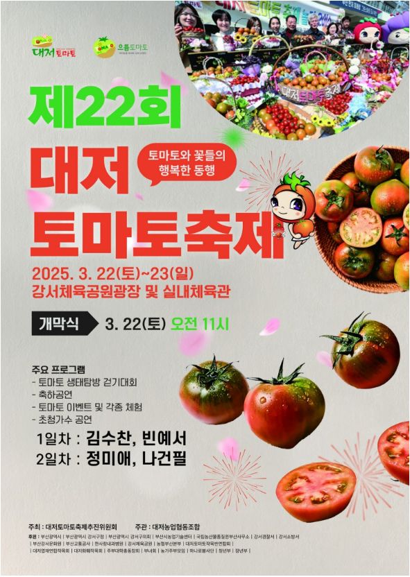 대저 토마토의 우수성을 널리 알리고, 소비자들과의 소통을 위해 매년 대저토마토 축제가 개최됩니다. 2025년에도 다양한 행사와 프로그램이 예정되어 있어 많은 이들의 관심이 집중되고 있습니다. 축제 기간 동안 토마토 수확 체험, 토마토 요리 경연, 토마토를 활용한 다양한 먹거리와 볼거리가 마련되어 방문객들에게 즐거움을 선사합니다.