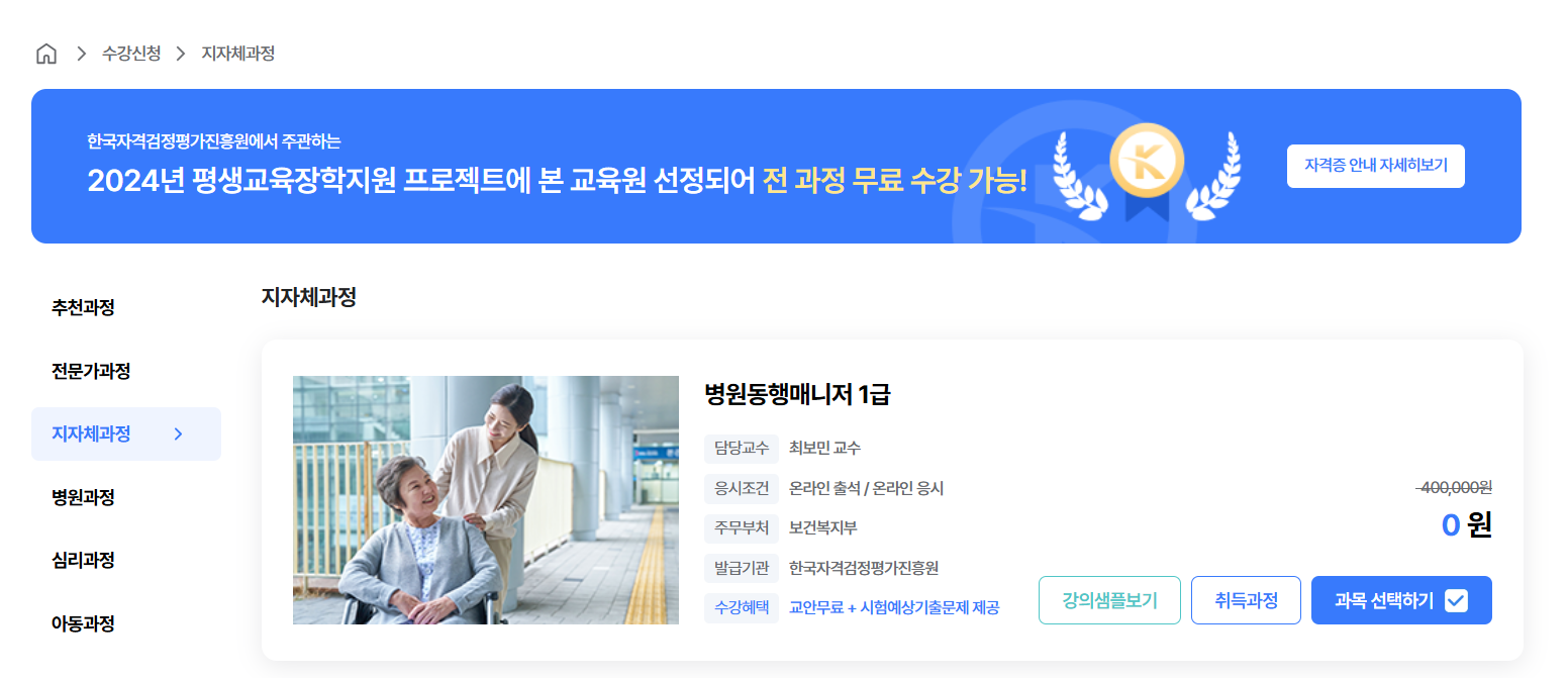 ▶ 자격증 발급: 시험 합격 시, 공식적인 병원동행매니저 자격증이 발급됩니다.